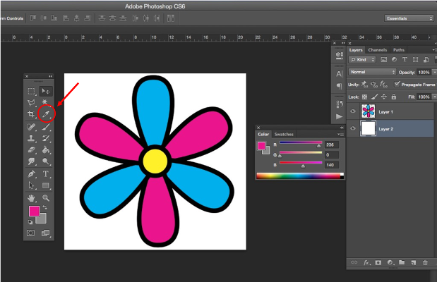 2. Select the Eyedropper tool and then click on the color in the image you’d like to convert to Pantone.