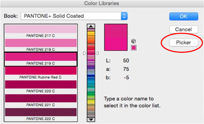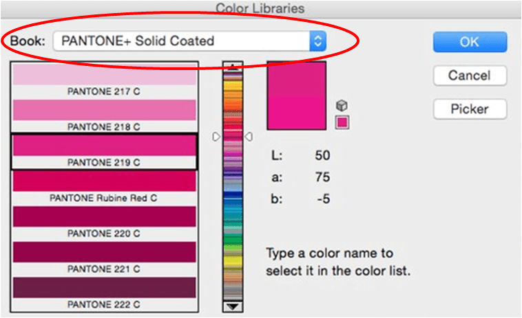 5. Click on the Book drop down menu and select PANTONE + Solid Coated.