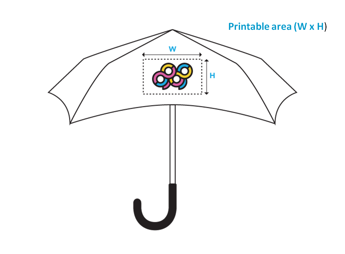 As with all promotional items, you always have to bear in mind the maximum dimensions of the printable area before placing your order. Always make sure that the dimensions of the design that you send is do not exceed the dimensions of the printing area. Please also note that the maximum printable area also depends on the type of umbrella that you wish to order. You can find the dimensions for each umbrella type in the large pop-up image accessible in the dropdown menus.