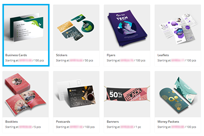 Pick the product that you would like to print by browsing: - The product grid on the website's homepage - The drop-down menu in the websites header section